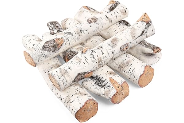 Uniflasy Gas Fireplace Log Set Ceramic White Birch for Intdoor Inserts