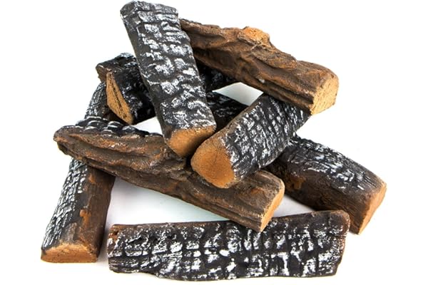 Ceramic Wood Gas Fireplace Log Set for Propane, Gas, Gas Inserts, Gel, Ethanol, Electric, Indoor, Outdoor Fireplaces, and Fire Pits (Large)