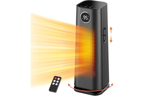 1500W Electric Oscillating Portable Ceramic Tower Heater with Remote, Thermostat, 24H Timer, Airflow Direction Adjust, Quiet Room Heater Safe for Office Bedroom