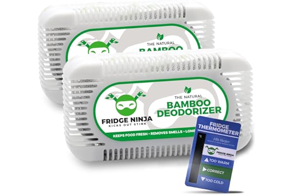 Natural Bamboo Activated Charcoal Fridge Deodorizer - More Effective Than Baking Soda - Refrigerator Odor Eliminator for Fridges, Freezers, Coolers and Lunch Boxes
