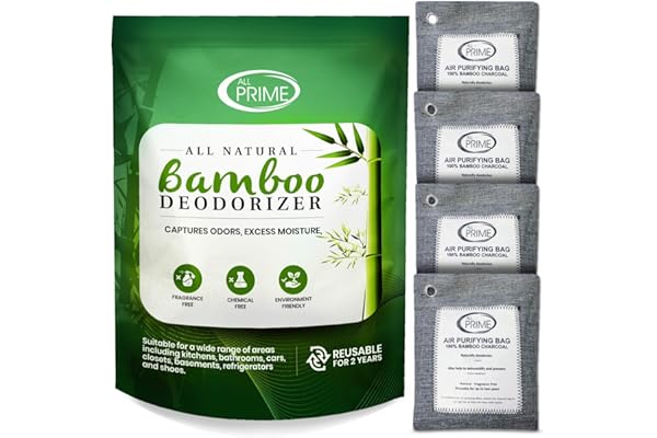 All Prime Bamboo Charcoal Bags Odor Absorber - 4 Pack LARGE 500g Bags