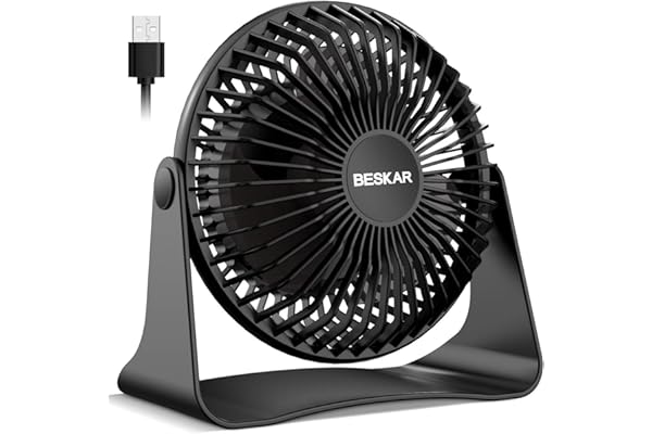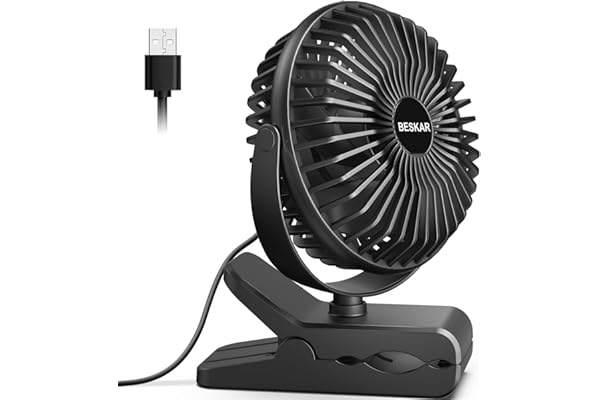 BESKAR 6 Inch Clip on Fan, 3 Speeds Small Fan with Strong Airflow, Clip & Desk Fan USB Plug in with Sturdy Clamp