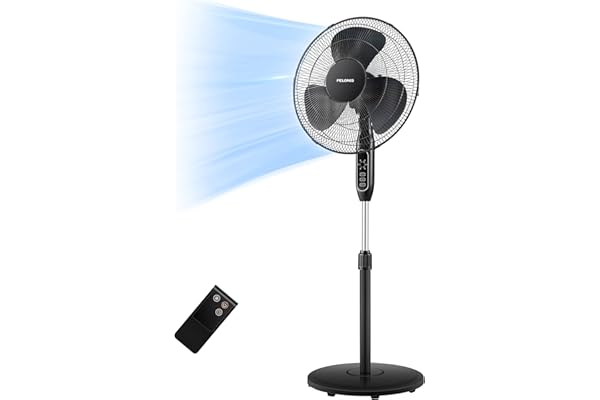 16'' Pedestal Remote Control Oscillating Stand Up Fan 7-Hour Timer, 3-Speed, and Adjustable Height, Height Electric Cooling Fans for Home Office Bedroom Use