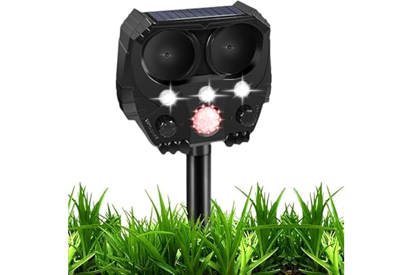 5 Mode Solar Powered Deterrent Device with Motion Sensor and Flashing Light, Outdoor Waterproof Device for Farm, Garden, Yard, Dogs, Cats, Birds and More