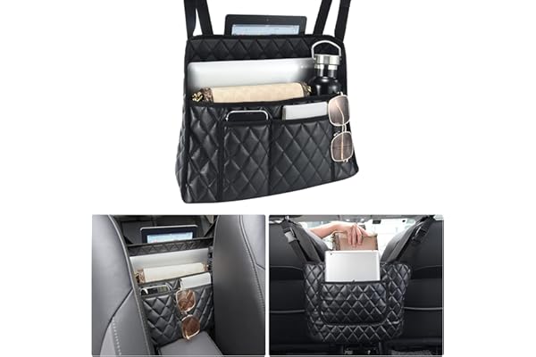 Car Purse Holder for Car between Seats Car Leather Pocket Holder, Car Pocket Holder Organizer for Bag, Phone, Documents, Large Capacity Barrier Pet, Kids (7.08 inch Width)