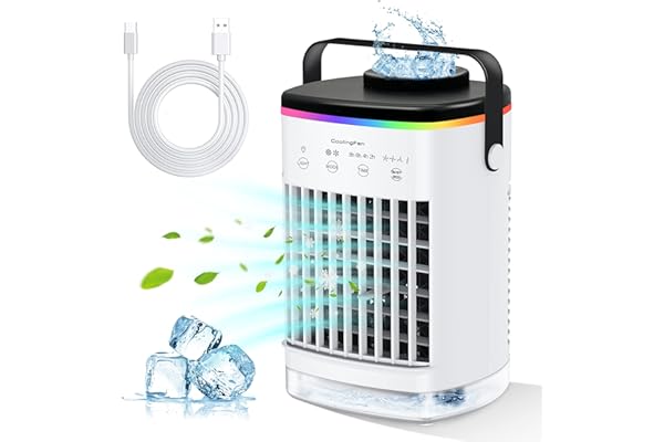 Personal Air Conditioner Cooling Fan, 4 Wind Speed, 7 Color Light, 2 Cool Air Spray, and 2-8H Timer, Ice Cube Tray, 3 IN 1Portable Air Conditioner for Room/Office