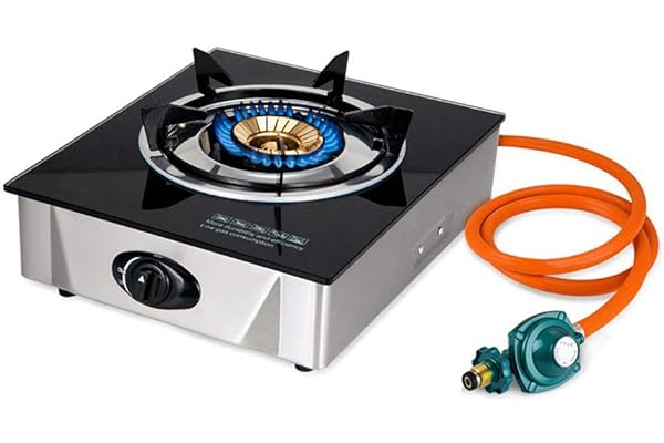 Single Propane Gas Burner Stove with Auto Ignition Tempered Glass Top Hose & Regulator for Camping and Outdoor Cooking (One Burner)
