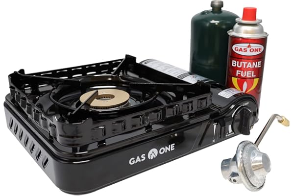 Gas One Dual Fuel Portable Stove 15,000BTU With Brass Burner Head, Dual Spiral Flame Gas Stove