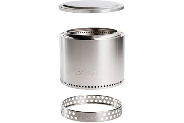 Incl. Smokeless Fire Pit, Stand, Lid, Camping Accessories, Portable for Wood Burning, Removable Ash Pan, Stainless Steel, H: 16.75in x Dia: 19.5in, 21.75lbs
