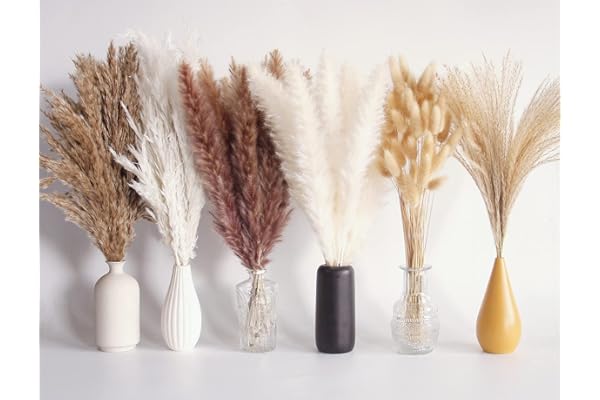 Boho Table Decor, Bunny Tails Dried Flowers, Brown Pompas, White Pampas Grass for Wedding, Home, Rustic Party, Baby Shower Decorations