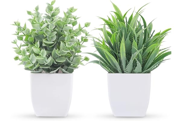 Der Rose 2 Packs Small Fake Plants Mini Artificial Potted Plants for Table Desk Home Bathroom Office Decor