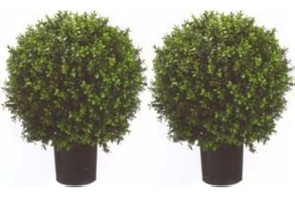 Silk Tree Warehouse Company Inc Two 2 Foot Outdoor Artificial Boxwood Ball Topiary Bushes Potted Plants 16 inches Wide Silk Tree Warehouse Company Inc