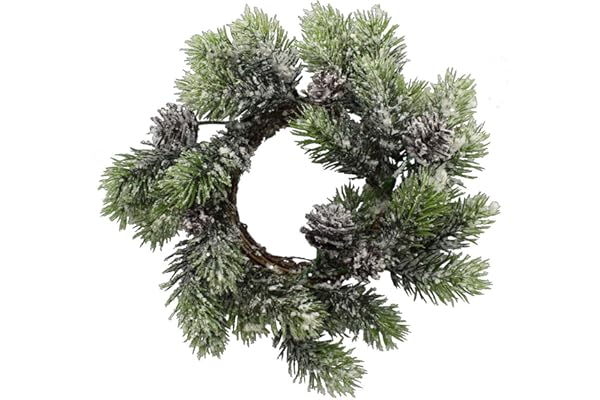 PA Essentials Candle Ring W/Snow Pine 10"Grn