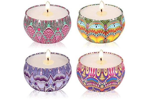 Natural Soy Wax with Floral Essential Oil Travel Tin Candles Use for Aromatherapy Stress Relax, Home Decor, Yoga Meditation Reiki, Pack 4