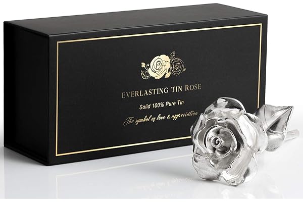 Tin Gift for 10 Year Wedding Anniversary for Couple Solid 100% Pure Casted Tin Everlasting Rose Tenth Anniversary for Wife Tin Aluminum Gift for Family