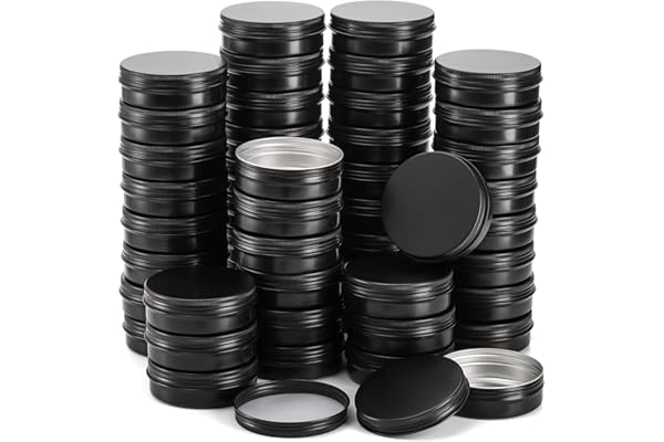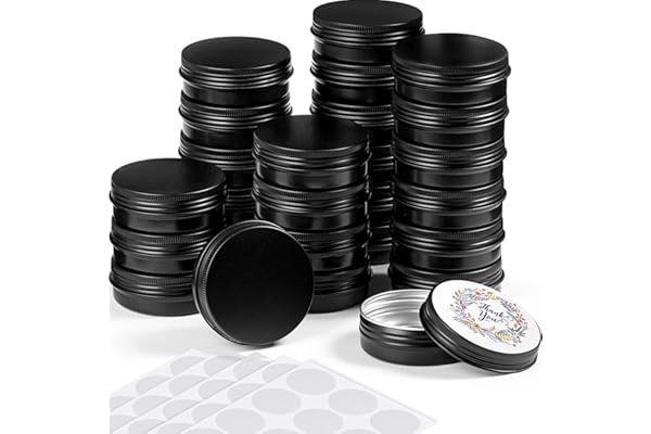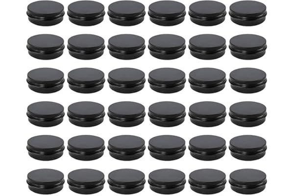 Moretoes 36 Pack 2 Oz Metal Round Balm Tins Black Aluminum Cans Empty Containers with Screw Lids for Salve
