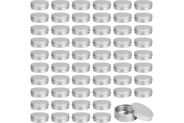 Moretoes 60 Pack 2 Oz Metal Round Tins Aluminum Tin Cans Containers with Screw Lid for Lotion Bars