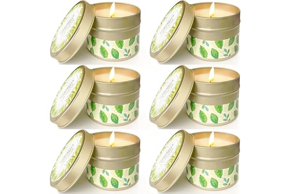 Natural Soy Wax Candles Gift Set, Travel Tin Candles Set, Lemongrass Aromatherapy Candles for Home Garden Patio Balcony