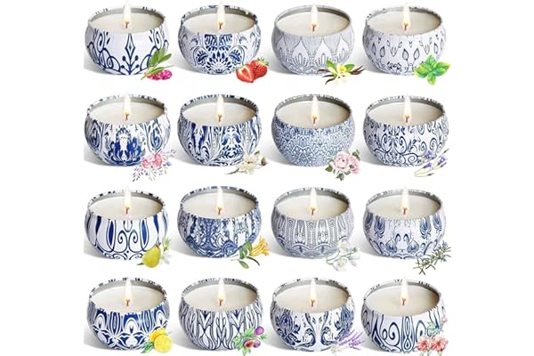 Set of 16 Small Scented Candles Soy Wax Aromatherapy Candles 2.5 OZ Portable Tin Candles with Lid