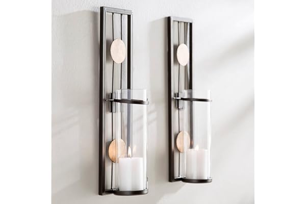 Metal Wall Décor for Living Room, Bathroom, Dining Room Decoration, Set of 2 Candle Sconce