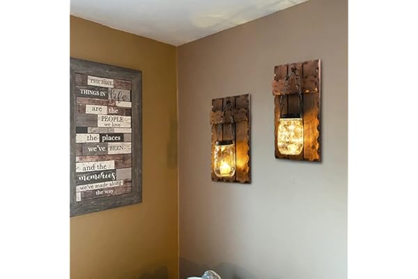 Rustic Wall Sconces Decor, Mason Jar Wall Decor, Wall Candle Holder Hanging Decor With Lights, Wall Decorations For Living Room, Bathroom,Wall sconces Set of two