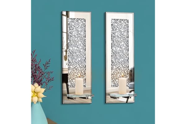 Rectangle Silver Mirrored Candle Sconces, Home Wall Decoration for Living Room,Dining Room & Bedroom