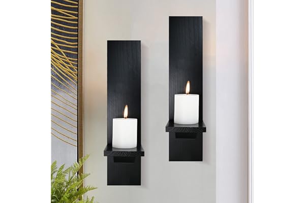 Decorative Wooden Candle Holder, Farmhouse Candle Sconce, Living Room Wall Decoration (Solid Black)