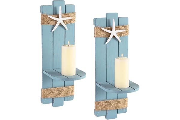 Ocean Themed Wall-Mount Candle Holders, Coastal Farmhouse Nautical Rustic Decorations for Bathroom, Living Room, Dining Room and Office, Set of 2