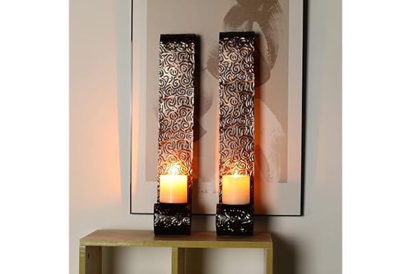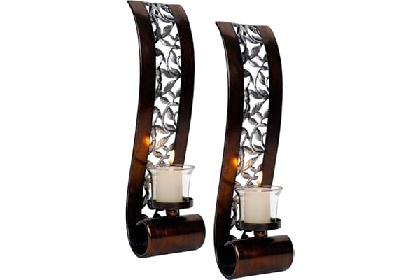 with Tea Light Candle Holder Antique Bronze Style Metal Wall Art Decorations for Living Room, Bathroom, Dining Room and Office, Set of 2