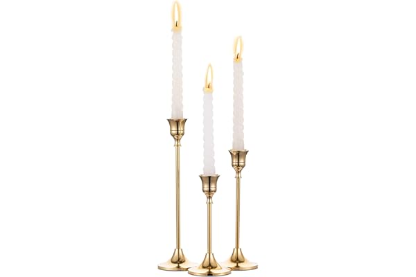 Set of 3 Candle Stick Holders Set, Brass Gold Candlestick Holder Set, Vintage Modern Decorative Centerpiece for Table Mantel Wedding Housewarming Gift