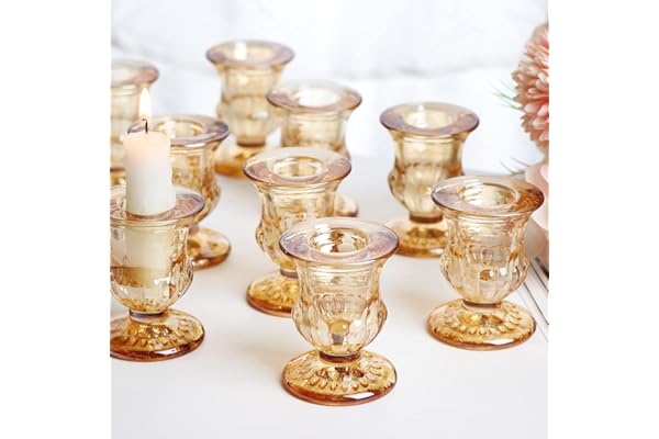 2.5" H Taper Candle Holders Bulk -Gold Glass Candle Holder for Rustic Wedding Centerpieces, Party Supplies