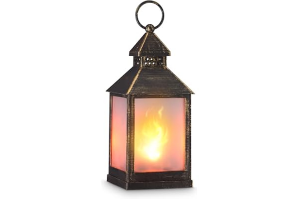Flame Effect LED Lantern,(Golden Brushed Black,4 Hours Timer) Indoor Lanterns Decorative,Outdoor Hanging Lantern,Decorative Candle Lanterns