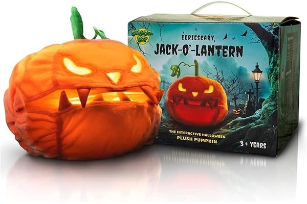 Eeriescary Jack-O-Lantern, Talking Halloween Animatronics, Pumpkin Plush Toy, Light-Up Halloween Decor, Battery Operated, Portable