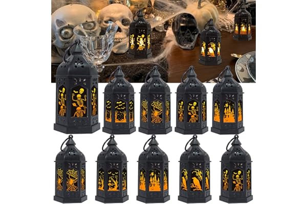Reperla Halloween Lantern 6-Pcs Mini Lantern LED Vintage Small Lanterns Indoor Outdoor Hanging Lanterns Decorative Candle Lanterns Farmhouse Gothic Home Table