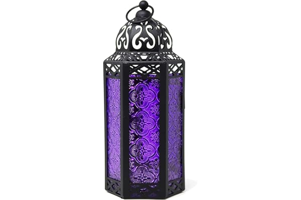 12.8'' Moroccan Style Christmas Hanging Lantern, Metal Tabletop Lantern Decor, Christmas Candle Holders for Outdoor Patio (Amber)