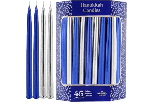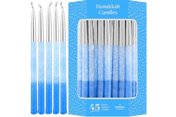 Blue, & Light Blue Deluxe, Hand-MadeTapered Decorations, Chanukkah Menorah Candles for All 8 Nights of Chanukah