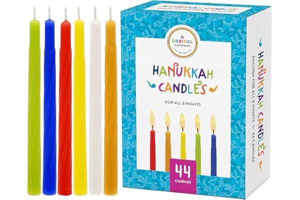 The Dreidel Company Menorah Candles Chanukah Candles 44 Colorful Hanukkah Candles for All 8 Nights of Chanukah (Single-Pack)