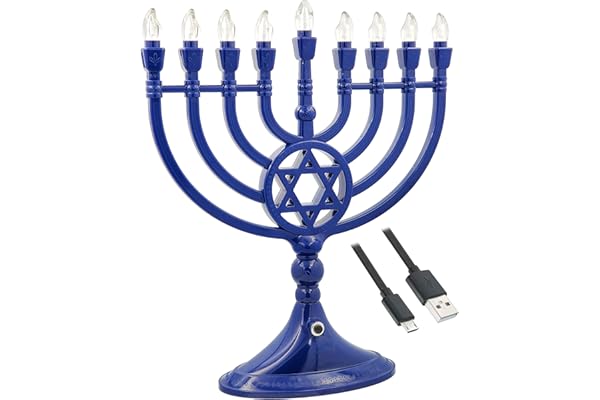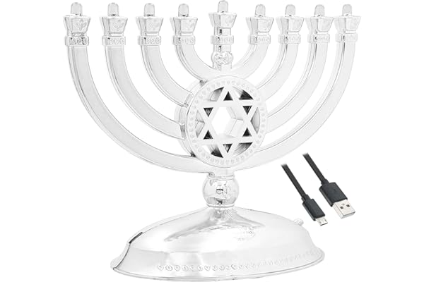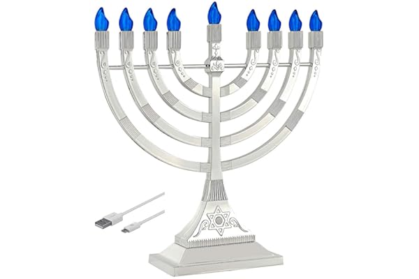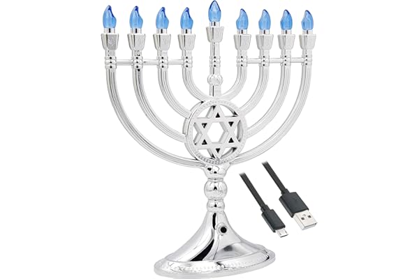 Batteries or USB Powered - 4' Cable Included Hanukkah Battery Menurah by Zion Judaica (Silver)