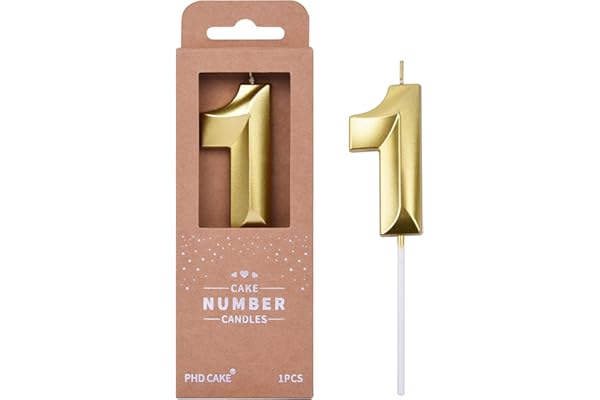 PHD CAKE 2.76 Inch Elegant Gold 1 Number Birthday Candles