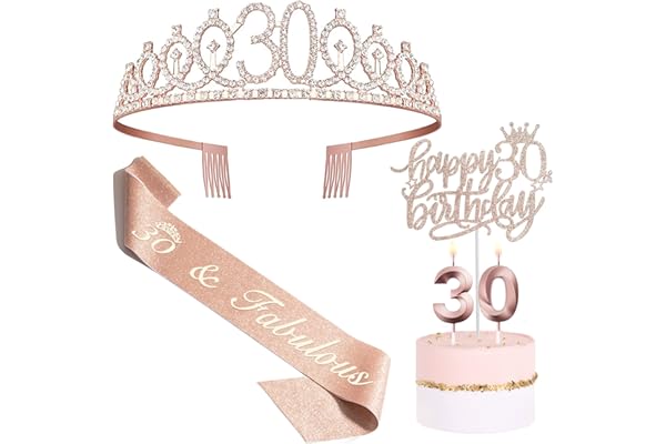 30th Birthday Tiara Crown, Sash, Cake Toppers,Birthday Candles, 30 Birthday Decorations Women