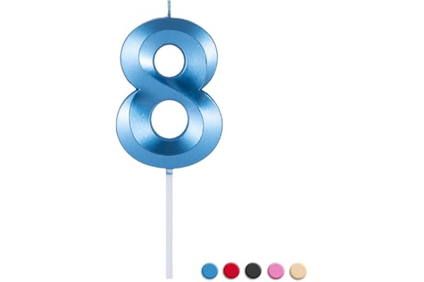 Birthday Candles Extended Big Number Candle Multicolor 3D Design Cake Topper Decoration for Any Celebration(8 Candle Blue)