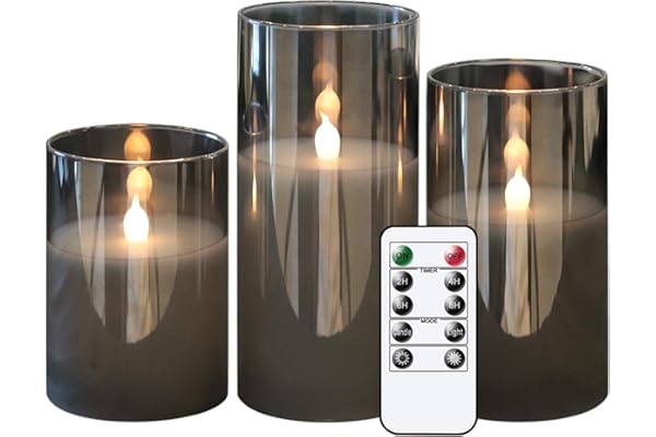 GenSwin Gray Glass Battery Operated Flameless Led Candles with 10-Key Remote and Timer