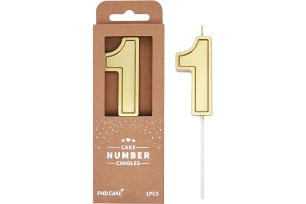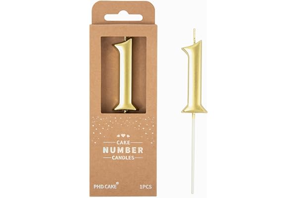 PHD CAKE 2.76 Inch Elegant Gold 1 Number Birthday Candles