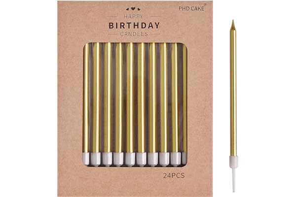 PHD CAKE 24-Count Gold Long Thin Metallic Birthday Candles
