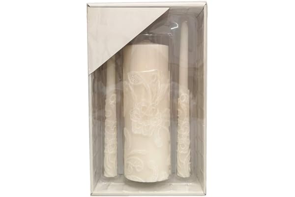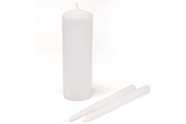 Hosley 11.50 Inch High White Wedding Unity Candle Set Includes 1 Pillar and 2 Taper Candles Great for Weddings as Well as Special Events and Emergency Lighting or for Reiki Spa Meditation