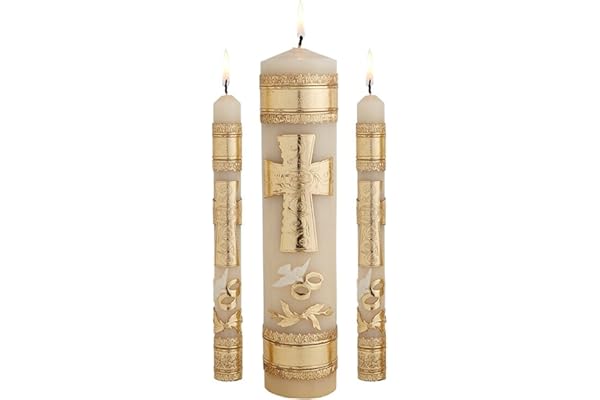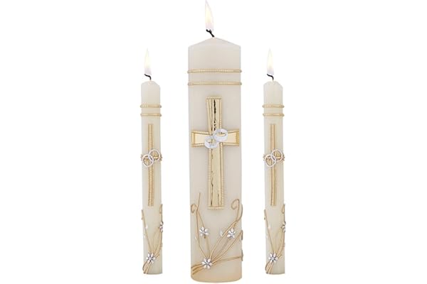 Gold Tone Commitment Candles Ornate Centerpiece for Marriage Reception and Ceremony, 3 Pieces Included