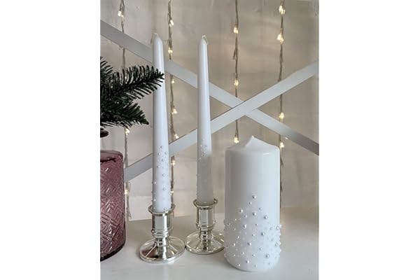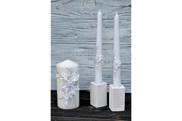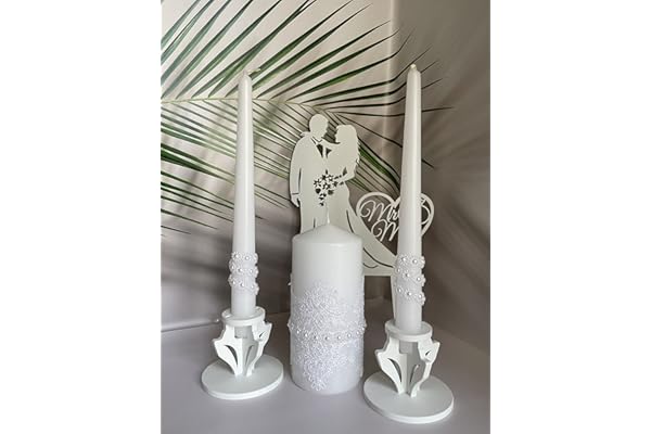 Wedding Accessories for Reception and Ceremony - Candle Sets - 6 Inch Pillar and 2 10 Inch Tapers - Decorative Pillars White
