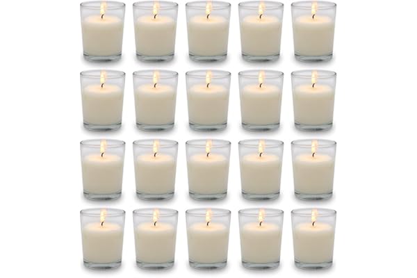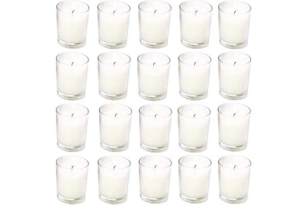 20 Pack Warm White Unscented Clear Glass Filled Votive Candles