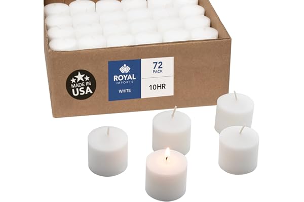 Unscented White Wax, Box of 72, for Wedding, Birthday, Holiday & Home Decoration (10 Hour) by Royal Imports