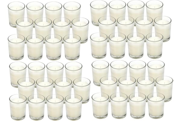 Hosley 48 Pack Ivory Unscented Clear Glass Filled Votive Candles